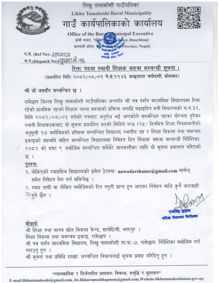 » रिक्त पदमा स्थायी शिक्षक सरुवा सम्बन्धी सूचना !