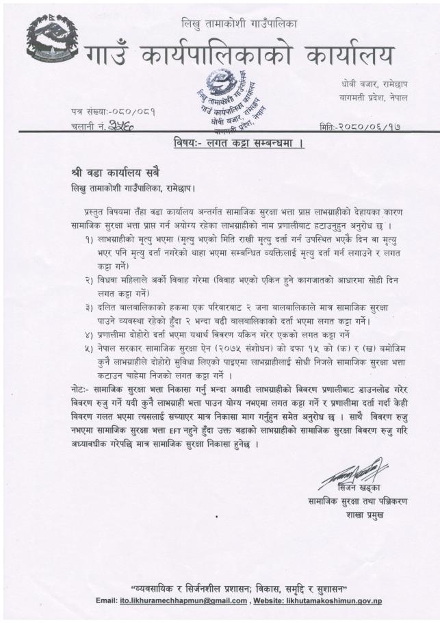 लगत कट्टा सम्बन्धमा । सबै वडा कार्यालय