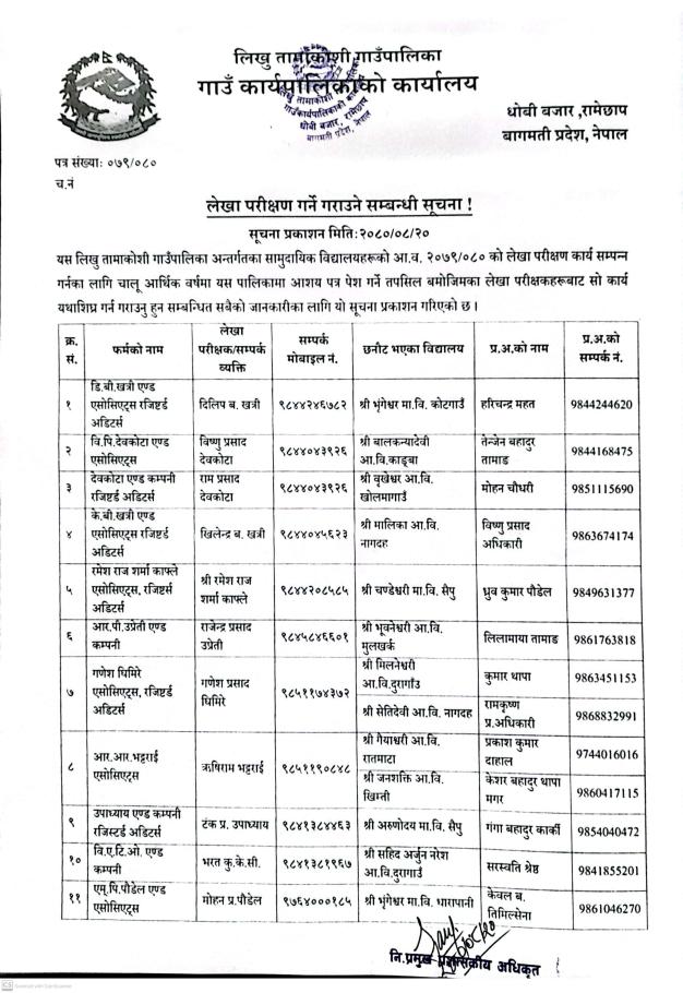 लेखा परीक्षण गर्ने गराउने सम्बन्धी सूचना