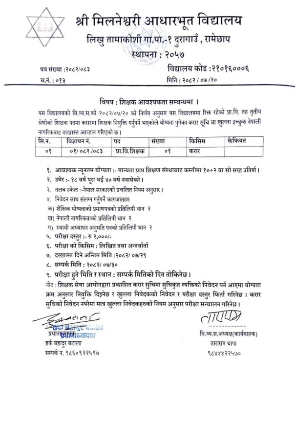» शिक्षक आवश्यकता सम्बन्धमा ।