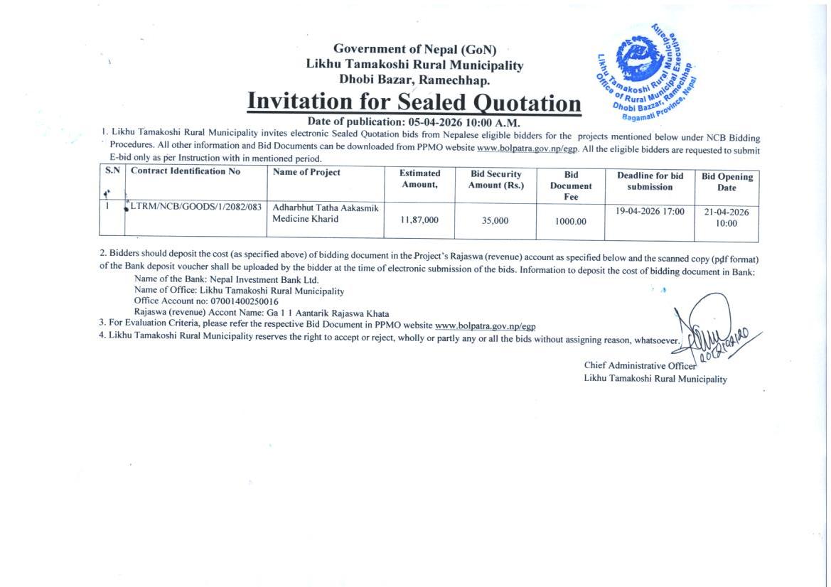 Invitation for Bids (Construction of Nagdaha Primary Health Post Ward No-5)